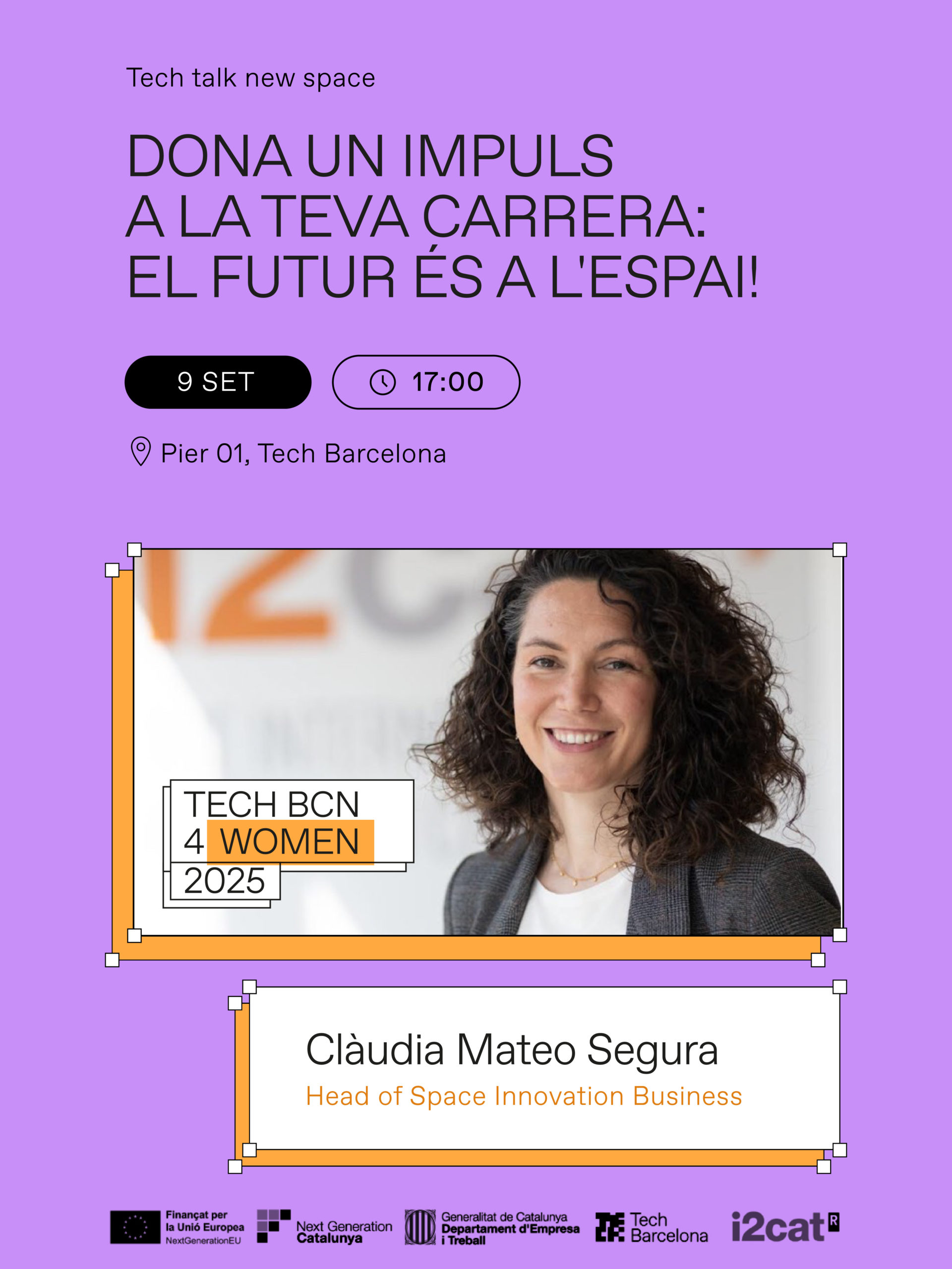 Dona un impuls a la teva carrera: El futur és a l'Espai! A càrrec de Clàudia Mateo Segura, Head of Space Innovation Business a la Fundació i2CAT Estàs preparada per explorar noves dimensions en la teva trajectòria professional? Vols fer un pas endavant cap a un futur professional ple de desafiaments i èxits? T'esperem en aquesta […]