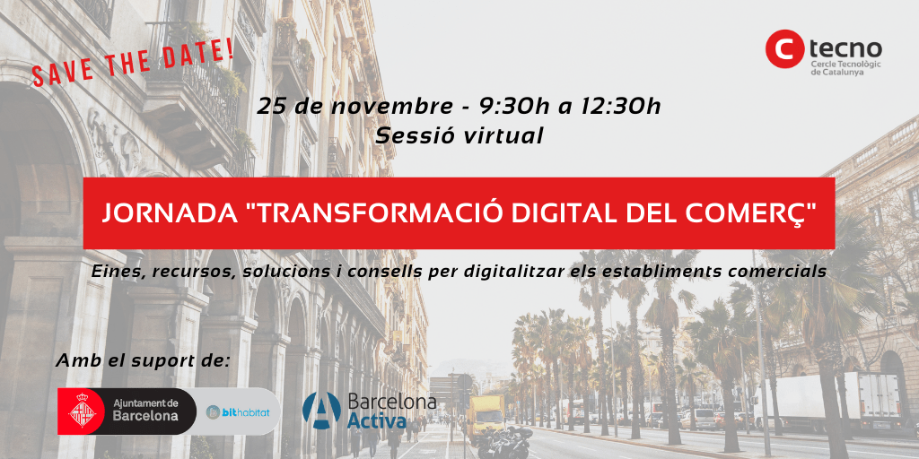 CTecno (Cercle Tecnològic de Catalunya) is organizing a conference about the digital transformation of commerce with the support of the City Council of Barcelona, BITHabitat, and Barcelona Activa. There will also be 3 production workshops for the participating establishments. Here you can find the agenda for the day, information about workshops, and register!