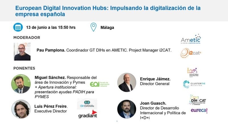 El panel "AMETIC en los EDIHs: Servicios para las PYMES y casos de éxito" está moderado por Pau Pamplona, project manager en el área de Digital Innovation Management Office y coordinador de GT DIH de AMETIC, y también cuenta con la participación de Jordi Daura como representante del DIH4CAT. Regístrate aquí!