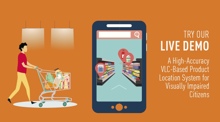 The system needs only commercial LED lights to function, which can be easily found in most retail areas, and a commuter. The LED light, thanks to a small switch, emit identification data. By capturing more than three lights, the camera, and therefore the smartphone, will be able to locate and indicate the smartphone’s orientation and provide product information in real time.