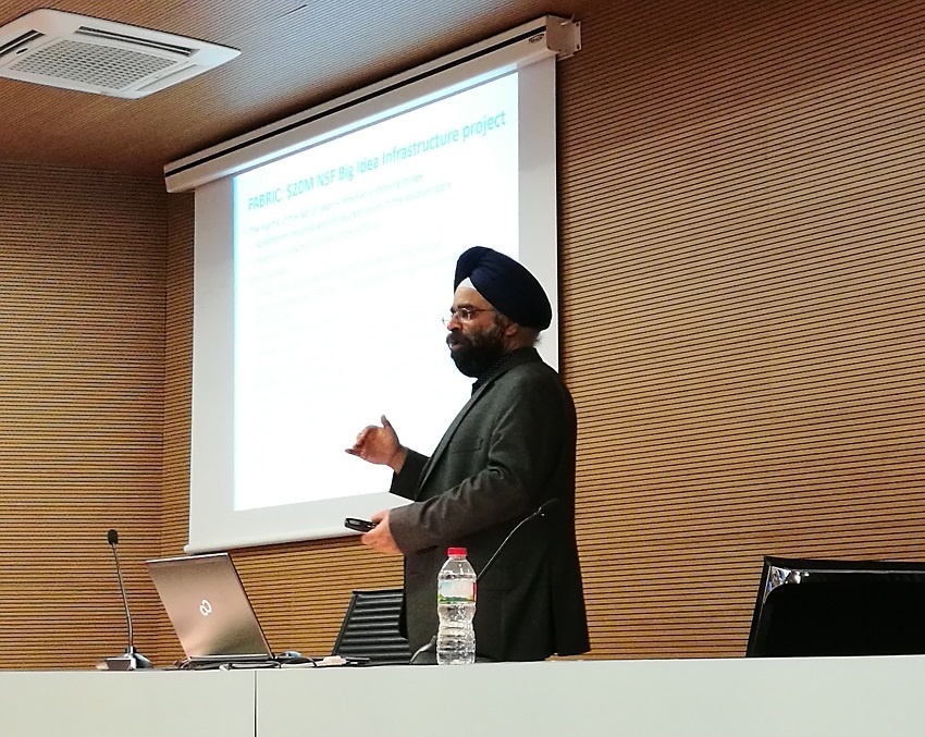 The session started with a talk by Mr. Monga, Executive Director of ESnet, a high-capacity network that interconnects the U.S. National Laboratory System, who presented the FABRIC project, which was recently funded by the National Science Foundation and works to deploy an infrastructure to validate new Internet architectures.
