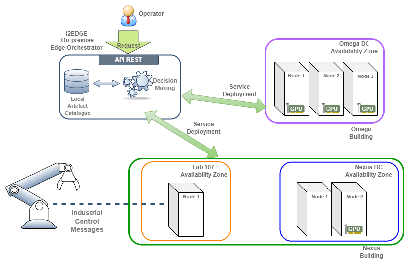Beyond supporting industrial applications and cloud-native network functions, i2EDGE can register multiple infrastructures or clusters, allowing streamlined management of computational resources across all registered infrastructures. This capability enables applications to be deployed flexibly across nodes, availability zones, or even data centres, with the option to migrate applications dynamically as contextual demands change. This adaptability ensures that applications can operate closer to data sources or end users when required, enhancing both performance and resource efficiency.