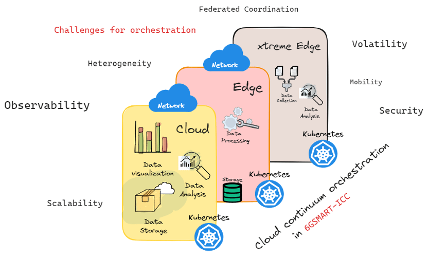 6GSMART-ICC provides a container-based orchestration solution supported by Kubernetes across this cloud-to-extreme Edge continuum.