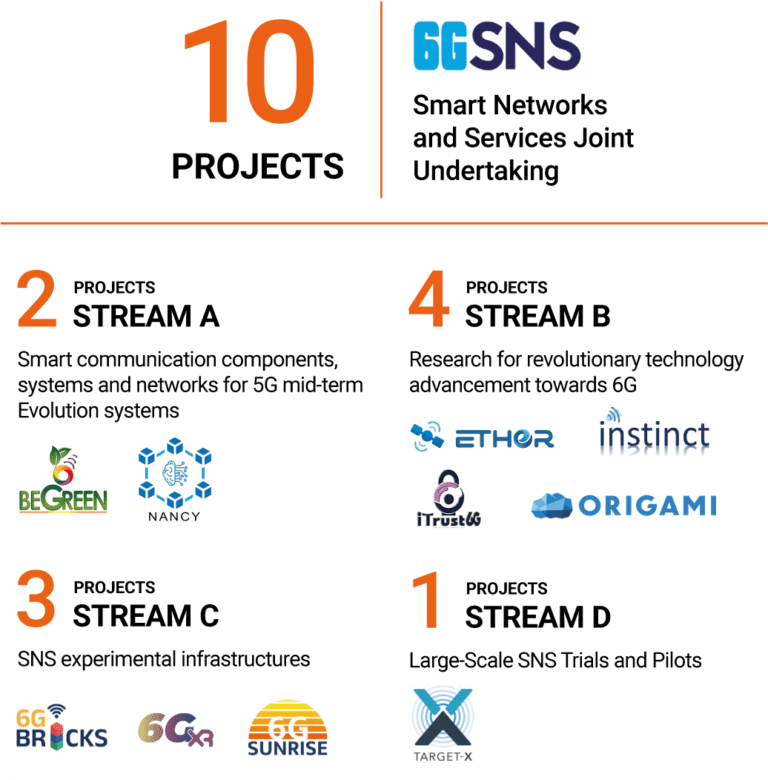 This active role in the European research ecosystem has recently been reinforced thanks to the participation of the Catalan centre in 10 R&D projects of the 6G Smart Networks and Services (SNS) Joint Undertaking (JU) programme. The 6G SNS JU is the European research and innovation initiative financed with Horizon Europe funds that aims to ensure European leadership in the global race to design the enabling technologies for the next generation of 6G mobile networks. i2CAT actively participates in the four main research lines -Streams- that define the 6G SNS JU, which guarantees it a leading role at European level in the design of the technologies that will make 6G a reality in the coming years.