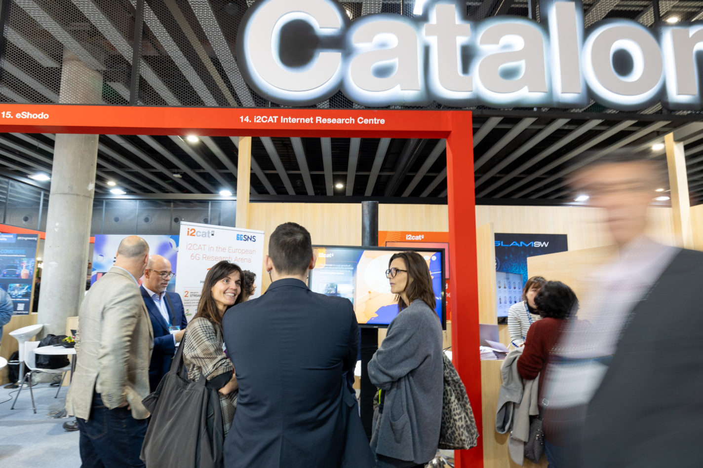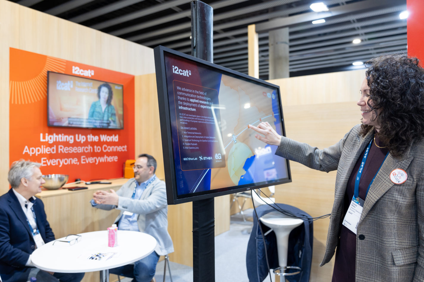 A l’estand d’i2CAT, situat al pavelló de la Generalitat de Catalunya, s’hi van exposar projectes que cobreixen el territori amb innovació tecnològica basada en les comunicacions NTN. Les persones visitants van poder conèixer des de les infraestructures experimentals de recerca del centre fins a les oportunitats de les comunicacions satel·litàries per ampliar serveis en zones de baixa cobertura i habilitar nous casos d’ús en sectors com l’agricultura, la ramaderia, el trànsit o la gestió d’emergències.