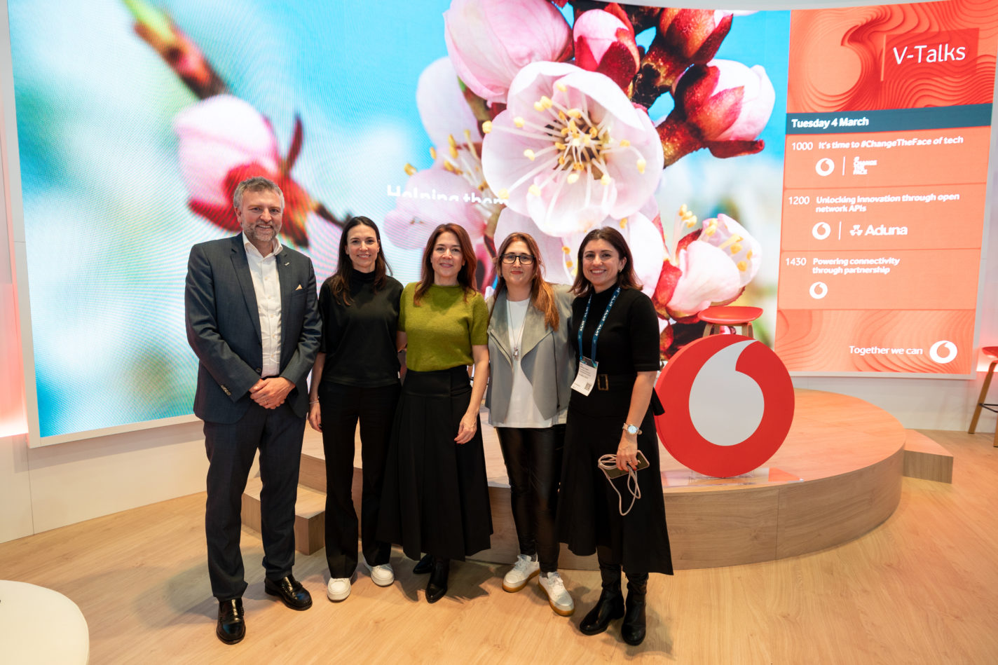 D’esquerra a dreta: Sergi Figuerola, director d’i2CAT; Irene Bernal, director de Producte i Estratègia a Telefónica Open Gateway; Beatriz Fernández, responsable de Core, SW & Platforms a Vodafone Group; Maria Isabel Fernandez, Cap d’Open Gateway a MasOrange, i Ana Moliner, Directora d’Innovació de Negoci a i2CAT.