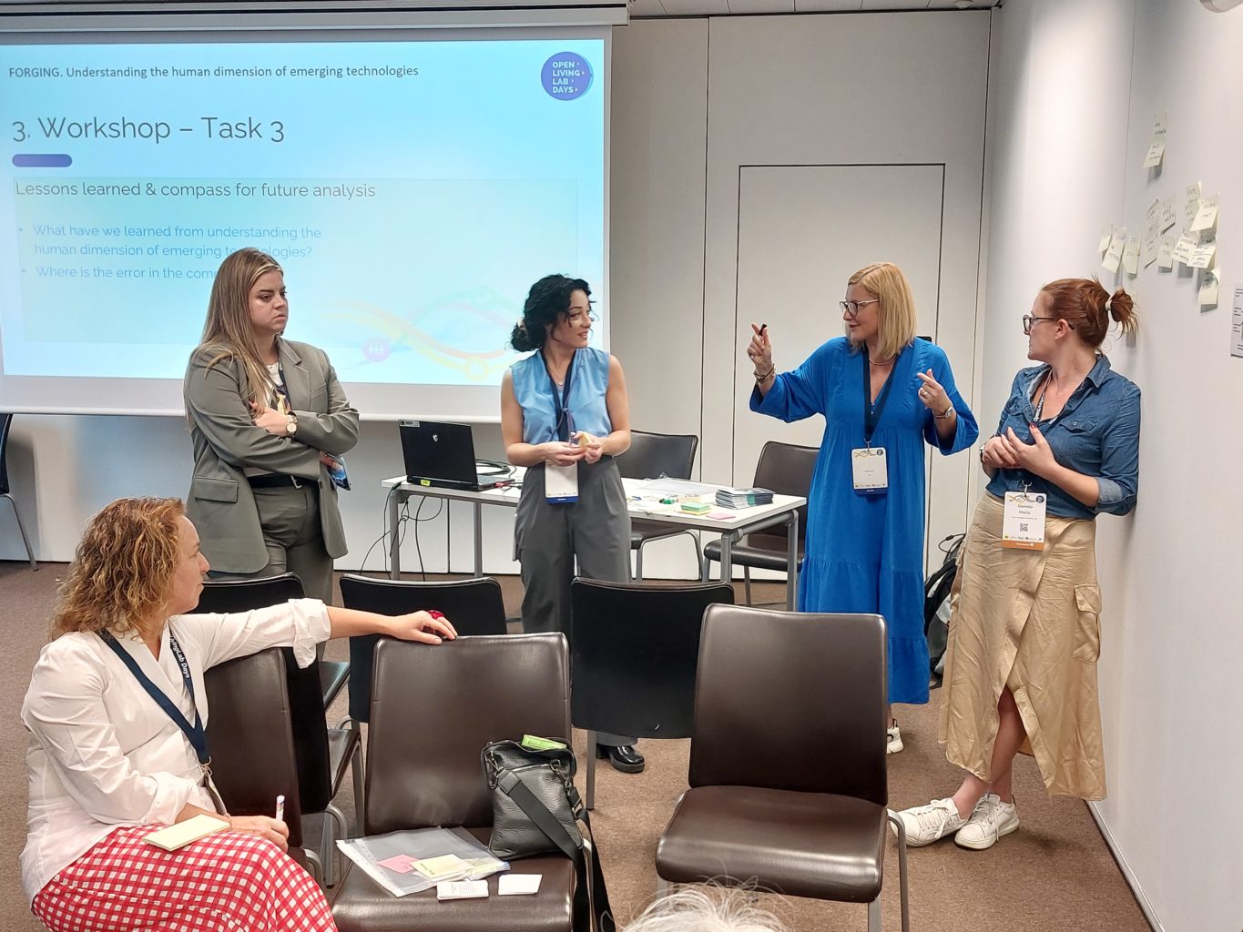 Within the framework of the project FORGING, the workshop “Understanding the human dimension of emerging technologies” took place with the participation of 15 people. The session was organised by Jordi Colobrans (i2CAT), Livia Di Bernardini (APRE) and Brigita Jurisic (INL) with a problem-solving method using interactive dialogue among three groups. The aim was to bring together different digital and social innovators to share good practices and lessons learnt in identifying potential synergies to raise awareness on the FORGING project. All the inputs provided by the participants will contribute directly to the project by gathering knowledge and inputs on emerging enabling technologies and through new and strengthened collaborations between experts who have joined the FORGING Forum.