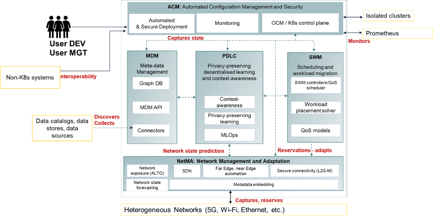 CODECO aims to contribute to smoother and more flexible support of services across the Edge-Cloud continuum by creating a novel, cognitive Edge-Cloud management framework. CODECO will implement software toolkits suitable for smarter managing highly distributed environments based on heterogeneous networks and integrating mobile, resource-constrained devices. The CODECO components shall extend the management and orchestration of Edge-Cloud services with cognitive cross-layer adaptability and with features that allow for intelligent decisions about computational offloading and network adaptation while taking into consideration application requirements, networking requirements, data security and sensitivity, as well as other context-specific aspects related with the data flow, which may emerge.
